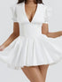 New style puff sleeve tie waist short pleated skirt