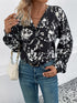New women's black and white flower printed lapel long-sleeved shirt
