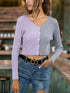 Perfee Contrast Button Up Long Sleeve Cardigan