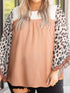 Plus Size Leopard Ruffle Trim Long Sleeve Blouse