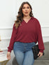 Plus Size Ribbed Collared Neck Long Sleeve Blouse