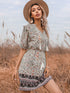 Slim Fit Fringed V-Neck Tie Floral Dress