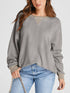 Waffle Knit Round Neck Long Sleeve T-Shirt