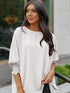 Women’s Solid Color Loose Fit Blouse With Ruffled Mid Length Sleeves