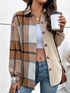 Women's autumn new long-sleeved plaid color block jacket