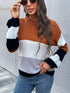 Women's Casual Fashion Long Sleeve Colorblock Sweater