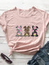 Women's Easter Leopard Print Floral Bunny Color Print T-Shirt