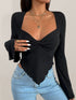 Women's knitted sexy sweetheart collar trumpet sleeve irregular long-sleeved T-shirt
