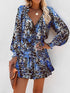 Women's Long Sleeve V Neck Fashion Printed Waist Dress