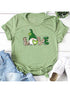 Women's new leopard print love + clover print St. Patrick's Day short-sleeved T-shirt
