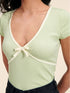 Women's New Solid Color Deep V Contrast Color Slim Fit Pure Cotton Knitted T-Shirt
