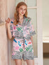 Women's printed short-sleeved shirt and shorts 2-piece suit
