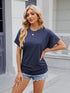 Women's round neck pleated solid color short-sleeved loose T-shirt top