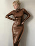 Women's sexy backless pleated glossy dress