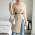 Women's Solid Color Slit Long Sleeve Turtleneck Sweater Dress