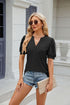 Women's V-neck puff sleeve pleated short-sleeved loose T-shirt