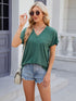 Women's V-neck solid color casual short-sleeved T-shirt top